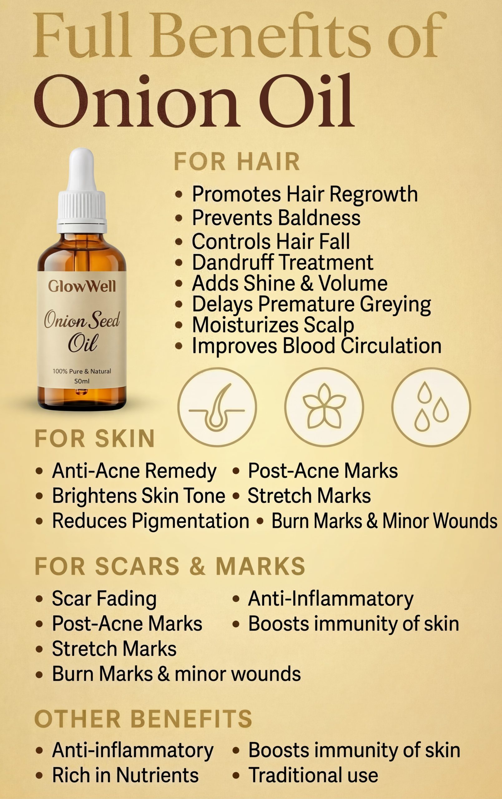 GlowWell Onion Seed Oil is your daily dose of root nourishment and hair revival, crafted for those who want real results, naturally.